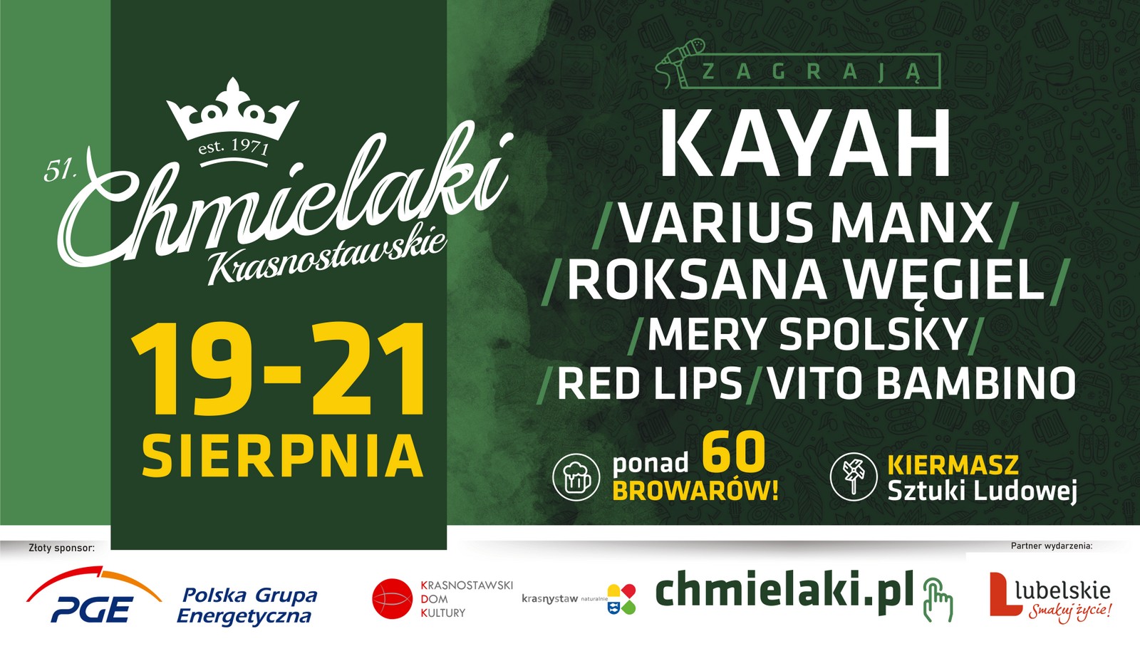 Zapraszamy na najstarszy festiwal piwny w Polsce. Bawimy się w dniach 19-21 sierpnia! Złoty Partner Wydarzenia: Województwo Lubelskie Złoty Sponsor Wydarzenia: PGE Polska Grupa Energetyczna 51. Chmielaki Krasnostawskie 2022 – PROGRAM IMPREZY: Scena RYNEK – LATO NA MAXXXA Piątek 19.08: 17:00 – Oficjalne otwarcie pierwszej beczki piwa oraz koncert Krasnystaw Young Vocal Challenge i laureatów […]