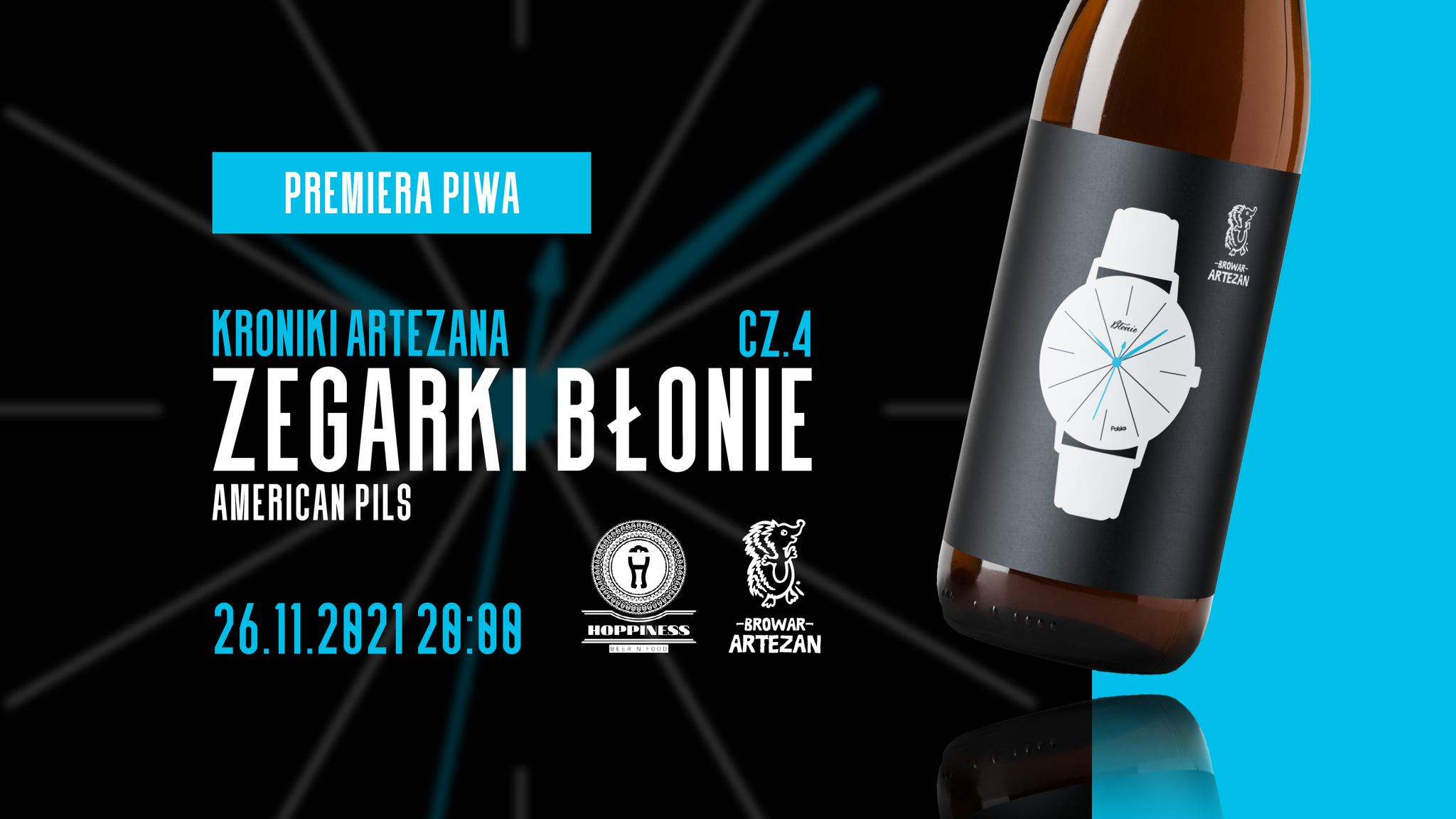 W piątek 26 listopada zapraszamy Was do Hoppiness na premierę czwartej części Kronik Artezana! Zegarki Błonie to chmielony amerykańskimi odmianami lekki pils.